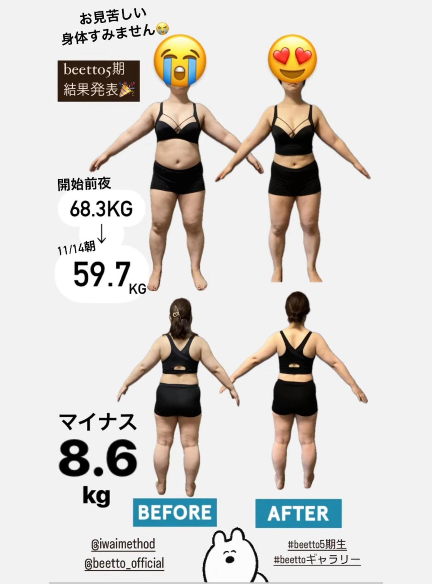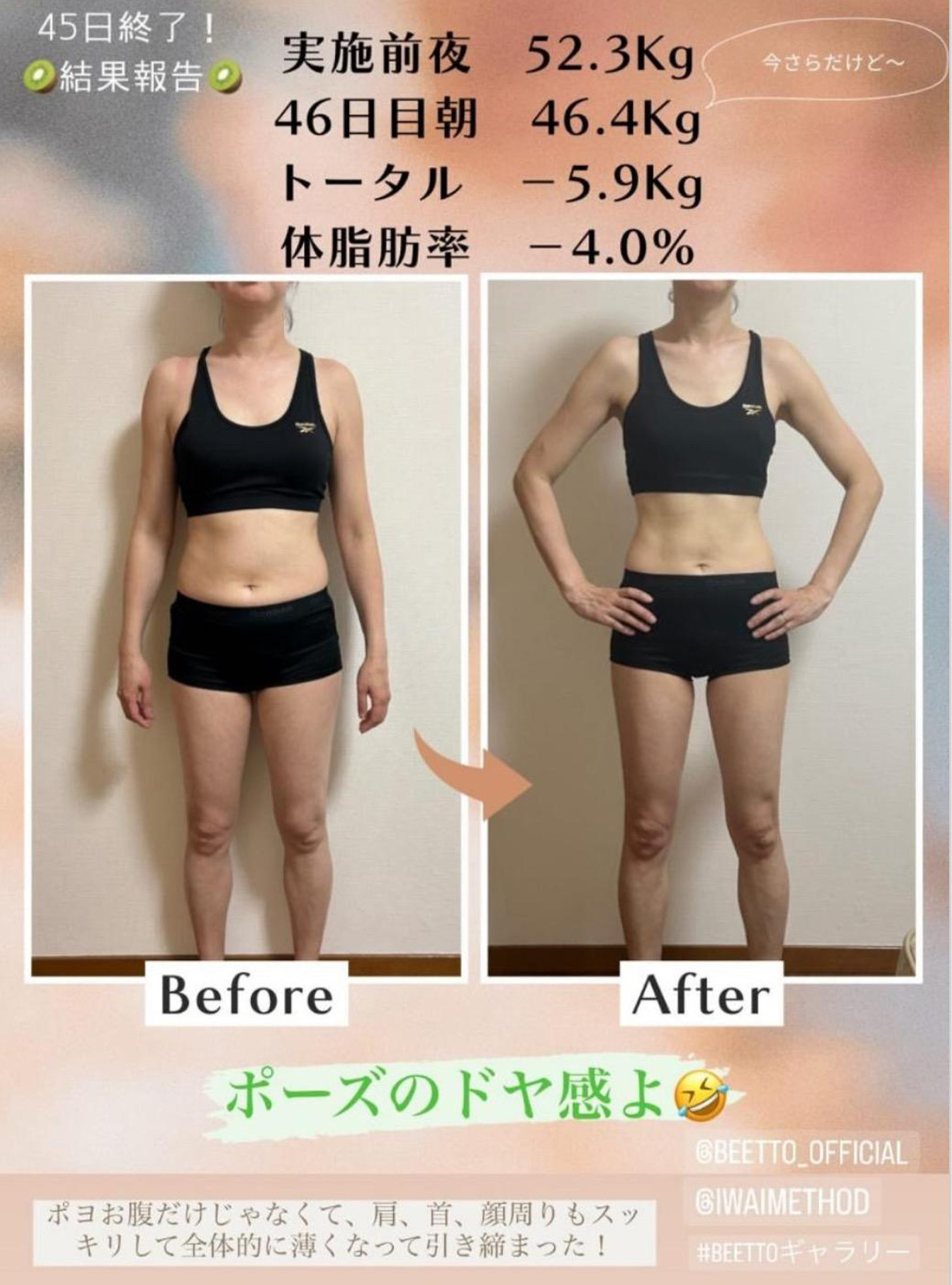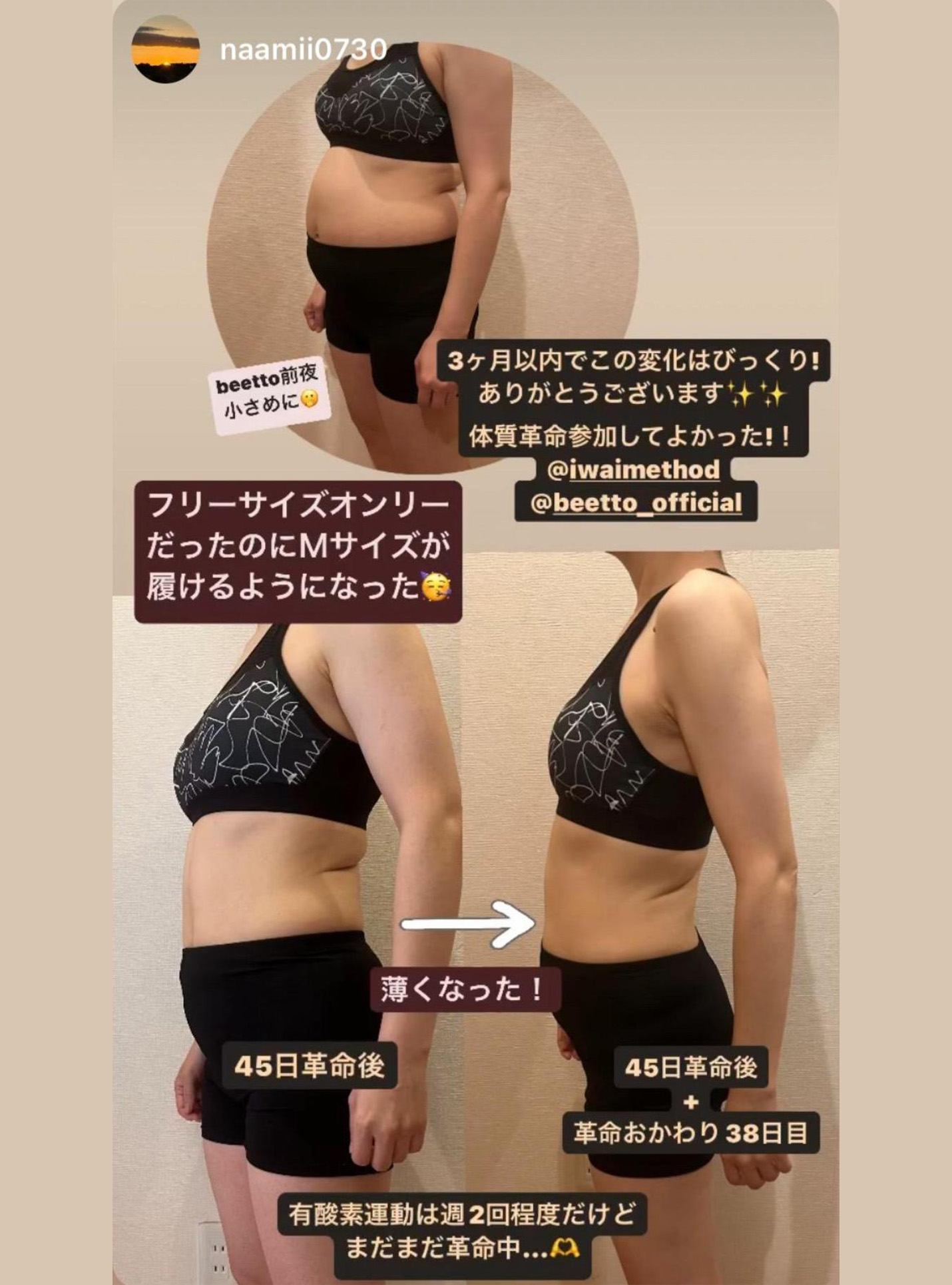 肩こり、腰痛、膝痛、頭痛、冷え性、睡眠障害改善··ダイエットプログラムとして圧倒的な結果を出していますがその効果は減量だけではありません。 beettoが “体質革命”を謳う理由はここにあります。日々寄せられる、体質改善の嬉しい効果はストーリーの アーカイブからご覧ください。